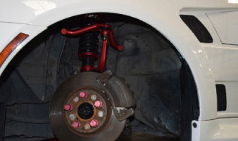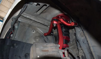 強度のあるピロボールを採用し、低い車高・高いバネレートにも